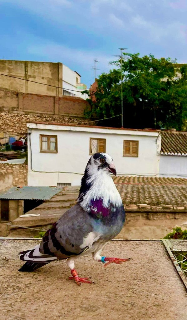 Los “Colombaris” locales han puesto a competir a sus palomos. Corren tras la bandada, armados de prismáticos, observando sus movimientos y esperando que sea su palomo el que acabe conquistando a la desesperada paloma. En eso consiste el deporte: vence el palomo que se lleva a la paloma (desconozco los matices).