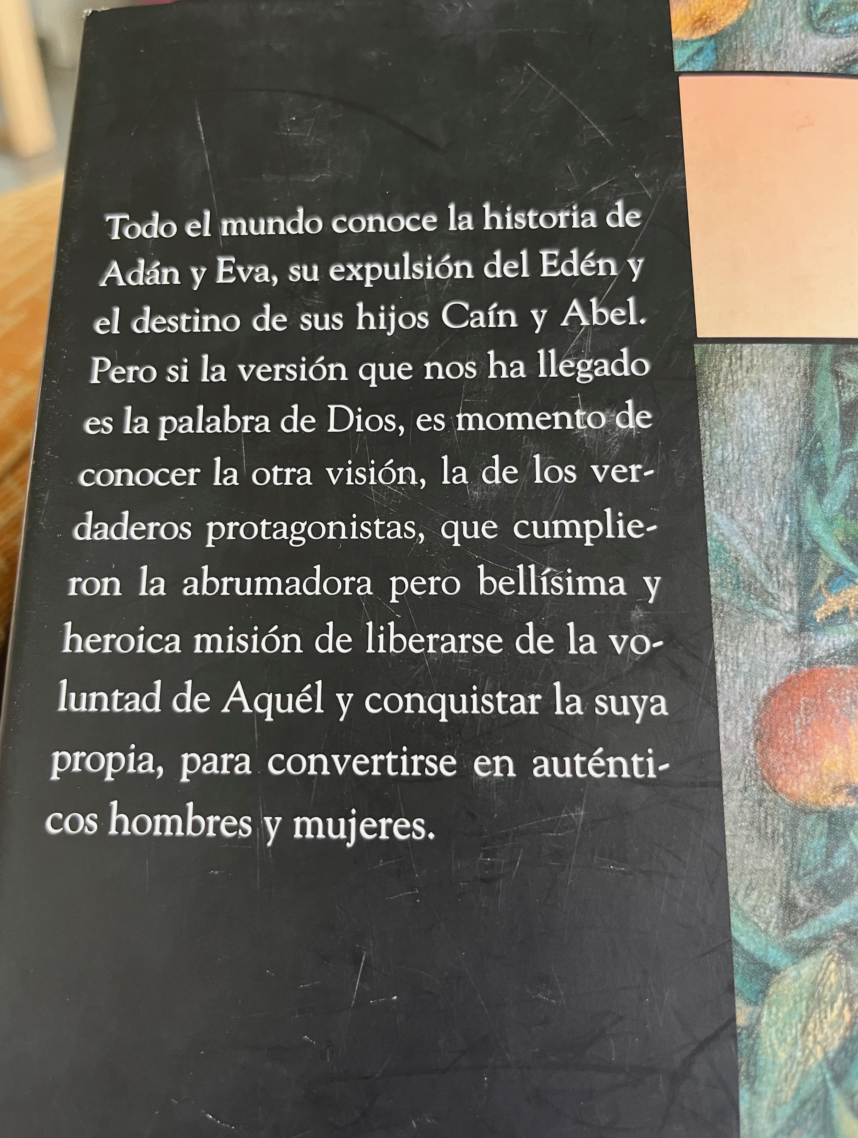 Un relato divertido que desmitifica mito y fábula, que convierte el libro de los orígenes en cuento. Las aventuras de Adán y Eva desprovistos de la protección de la divinidad, enfrentándose a su propia humanidad.
